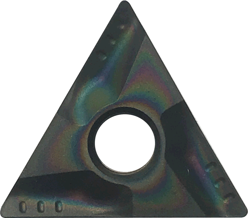 TiAl/AlCrSiMeN/AlOx是專(zhuān)門(mén)為硬質(zhì)合金刀片開(kāi)發(fā)的納米復(fù)合涂層,在精車(chē)、半精車(chē)和半粗車(chē)的切斷刀、車(chē)刀片上應(yīng)用效果展現(xiàn)非常優(yōu)異,在加工不銹鋼材料時(shí),通過(guò)批量對(duì)比,比在用的某國(guó)外品牌涂層刀片壽命提高2倍。