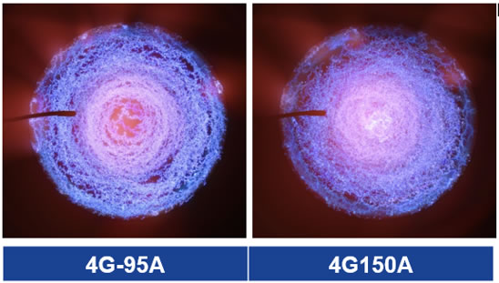 4G-CAE實際放電狀態(tài):在不同放電電流(95A或150A)下,持續(xù)放電1秒鐘時間,電弧弧斑在靶面上的分布可以控制均勻。